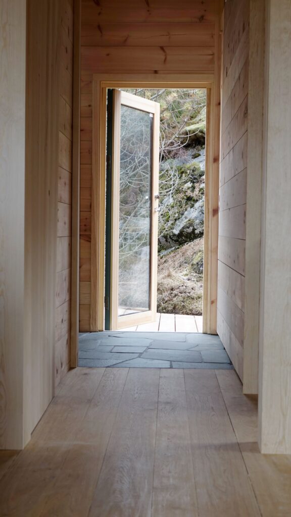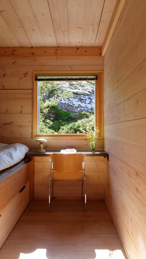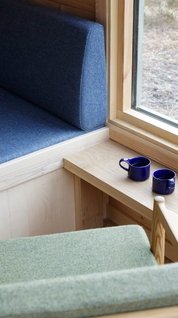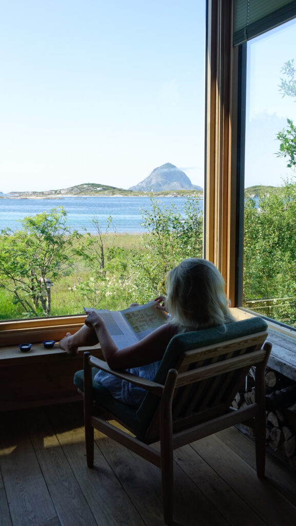 Our Cabin are perfect for a couple or a small group. The Cabin is bright and cosy and come with a large and comfortable bed, double height, handcrafted kitchen in ash, oak floors, architectural details, a private bathroom and views towards the best of Helgeland. The Cabin is situated in the same space that once was the fish-farmers heart: where they grew potatoes and cared for the eider ducks.